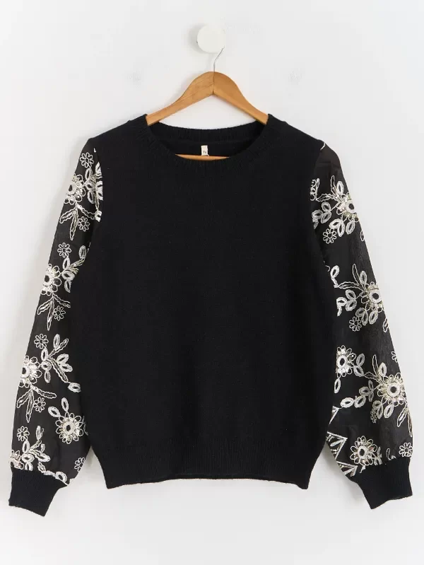 Sweater combinado con mangas bordadas