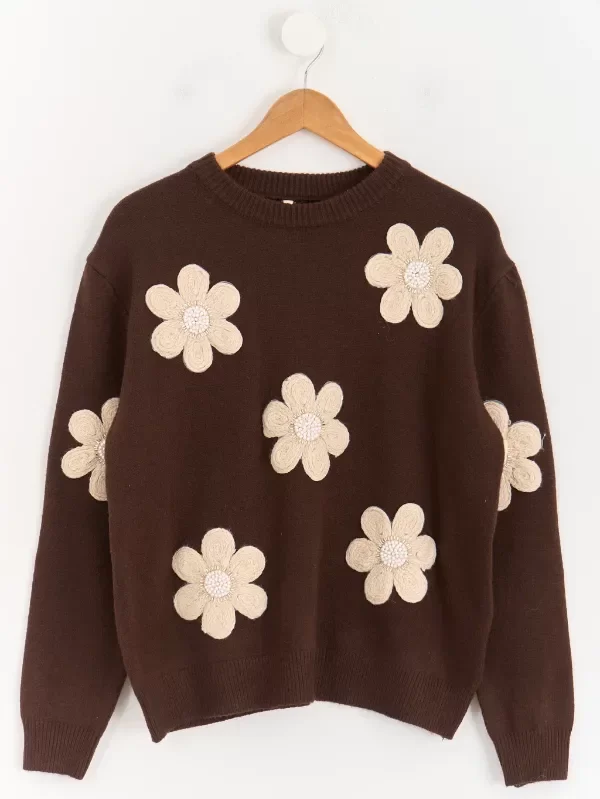 Sweater con bordado de flores con cordón, perlas y canutillos